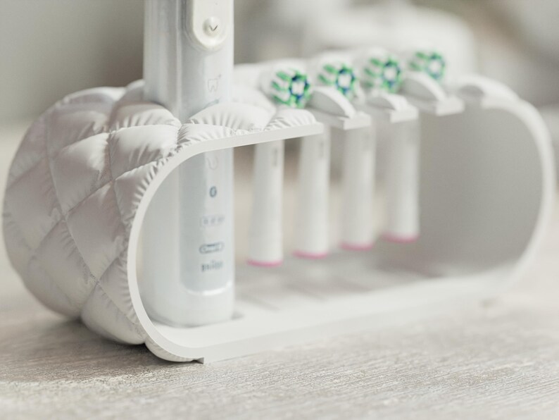 Organisieren Sie Ihr Badezimmer stilvoll mit diesem praktischen Zahnbürstenhalter im modernen Design. Der Halter bietet Platz für eine elektrische Zahnbürste und bis zu vier Aufsteckbürsten, sodass alles ordentlich und griffbereit bleibt. Mit seinem eleganten, gesteppte Look fügt sich der Zahnbürstenhalter nahtlos in jedes Badezimmerdekor ein.